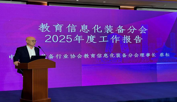 近日,中国教育装备行业协会教育信息化装备分会2025年度工作会议于第86届中国教育装备展示会期间在青岛召开。中国教育装备行业协会秘书长李瀛,西北师范大学教授、教育部教育信息化战略研究(西北)基地主任、分会专家组组长郭绍青,山东省电化教育馆馆长李浩,教育信息化装备分会理事长蔡耘、副理事长丁新,以及分会理事、常务理事出席本次会议。会议由教育信息化装备分会秘书长孙强主持。