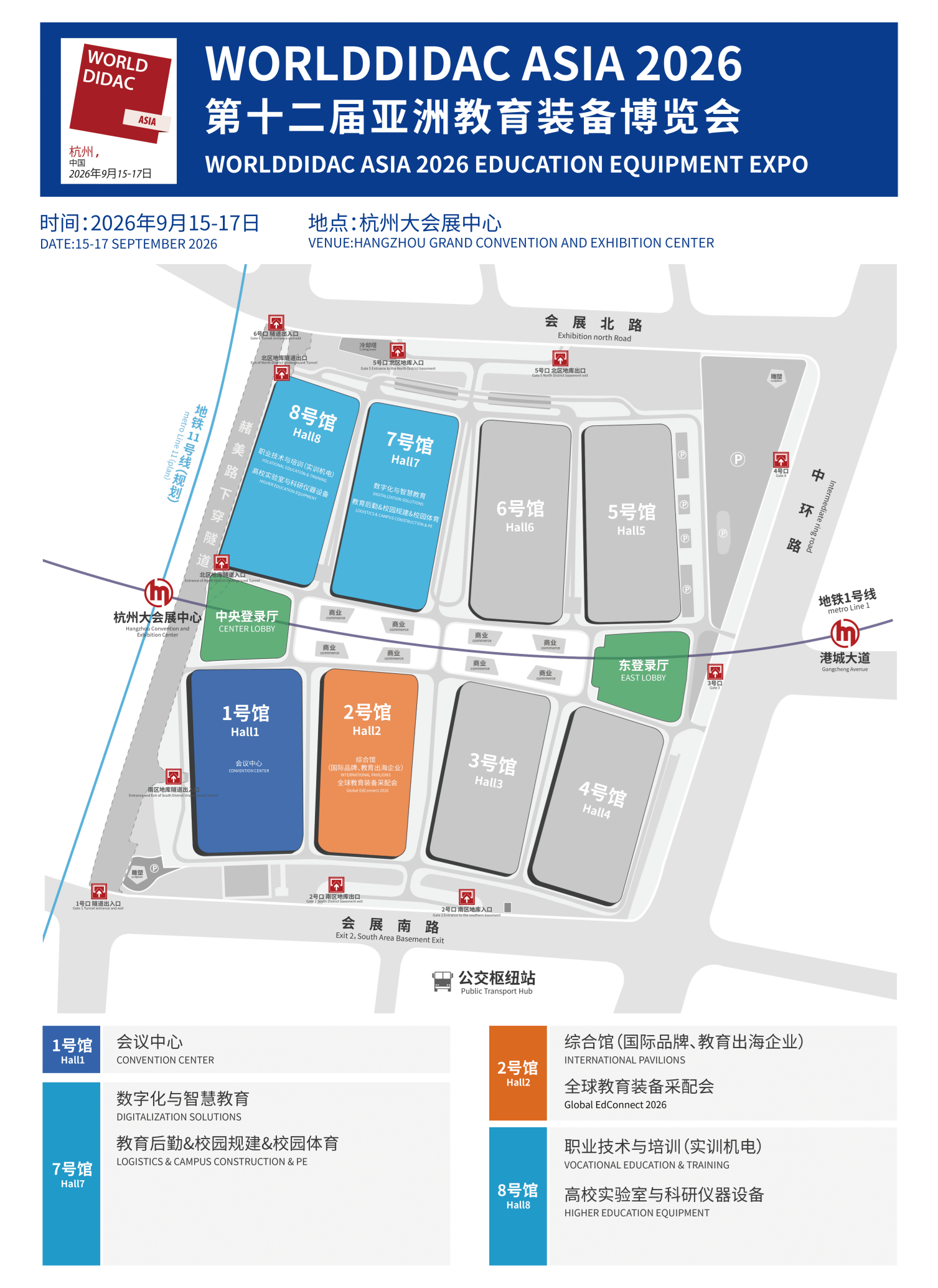 为深入贯彻落实文件精神,统筹做好“引进来”和“走出去”两篇大文章,有效利用世界一流教育资源和创新要素,加强国际间教育技术交流与合作,全面推进教育装备高质量发展,定于2026年9月15-17日在中国杭州市举办WORLDDIDAC ASIA 2026第十二届亚洲教育装备博览会(以下简称“亚教展”)。